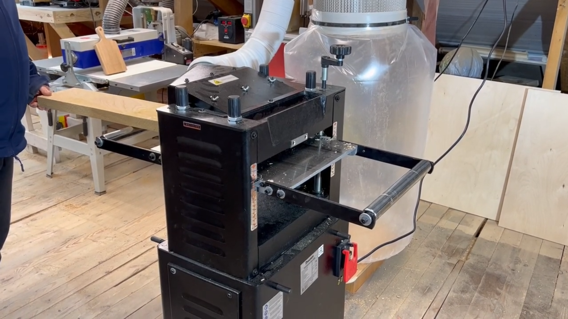 Очень удобный в работе рейсмус. Есть две скорости подачи. Обычно последние проходы делаю на более низкой. Заготовки подаются легко. Ролики не залипают, главное - вовремя чистить.